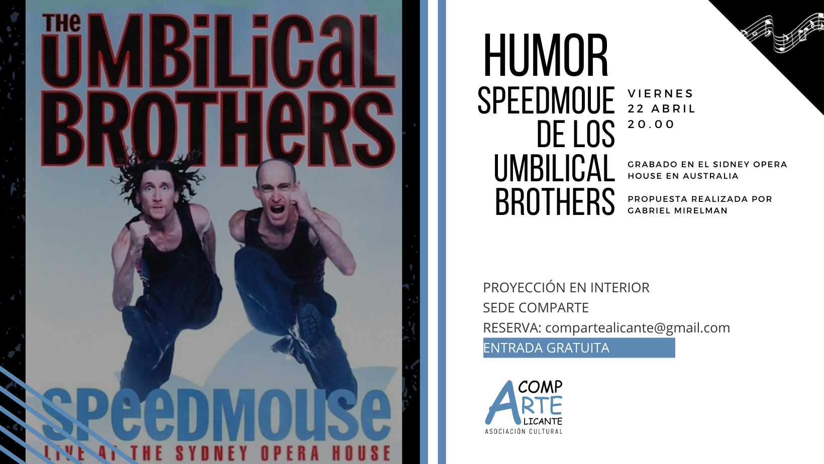 El próximo viernes día 22, tras los días de Semana Santa anunciamos evento en nuestra sede, a propuesta y generosidad de Gabriel Mirelman (socio, amigo y músico) podremos disfrutar del espectáculo de humor SPEEDMOUSE de los UMBILICAL BROTHERS, grabado en el Sidney Opera House en Australia