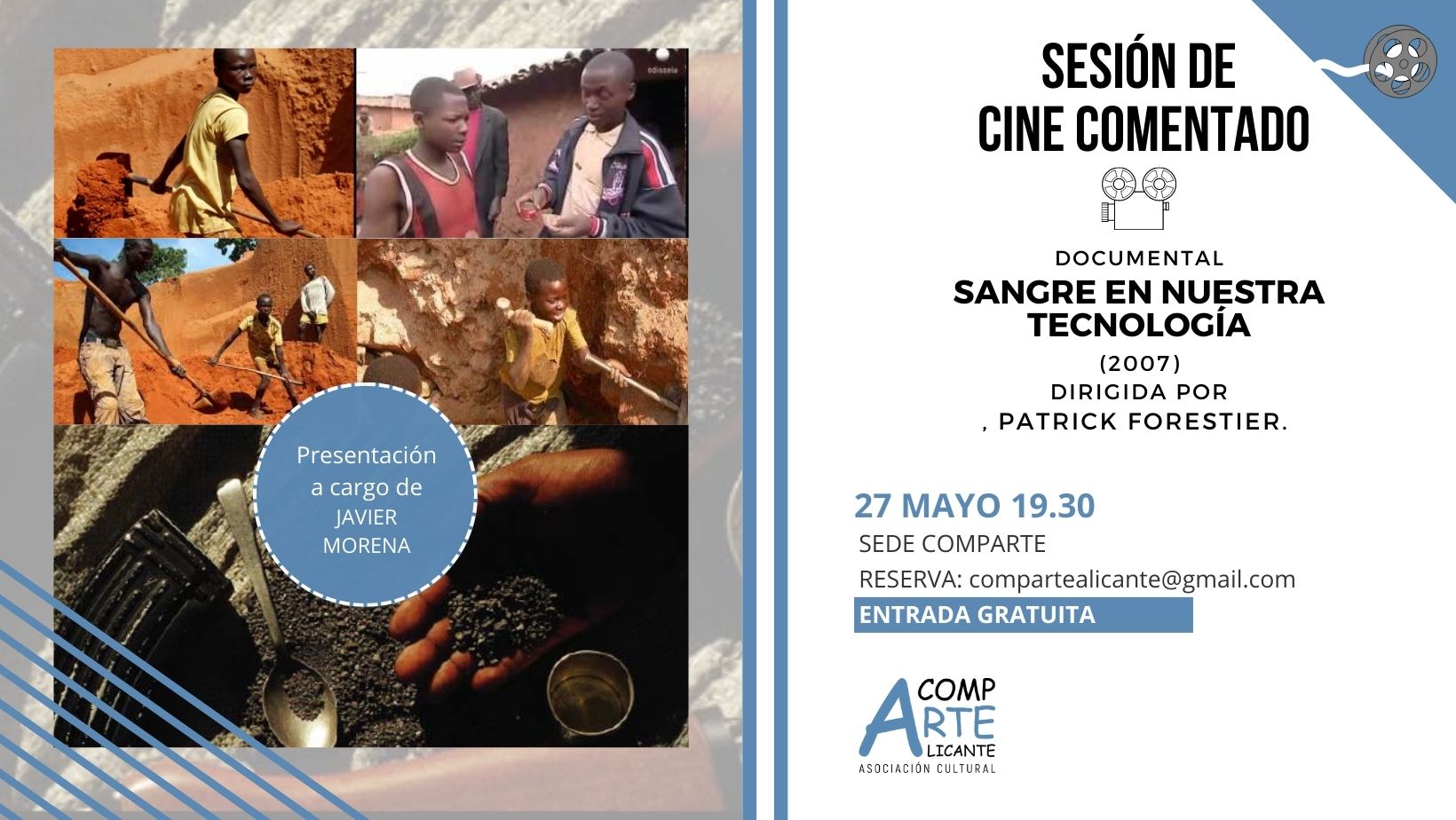 El próximo sábado 27 de mayo a las 19:30h. tenemos el placer de presentar una sesión de cine presentado por socio que en este caso lo hará nuestro socio, vicepresidente de la asociación y amigo Javier Morena, quien nos presentará el documental Coltán Comercio Sangriento. Sangre en Nuestra Tecnología (2007), del director Patrick Forestier.