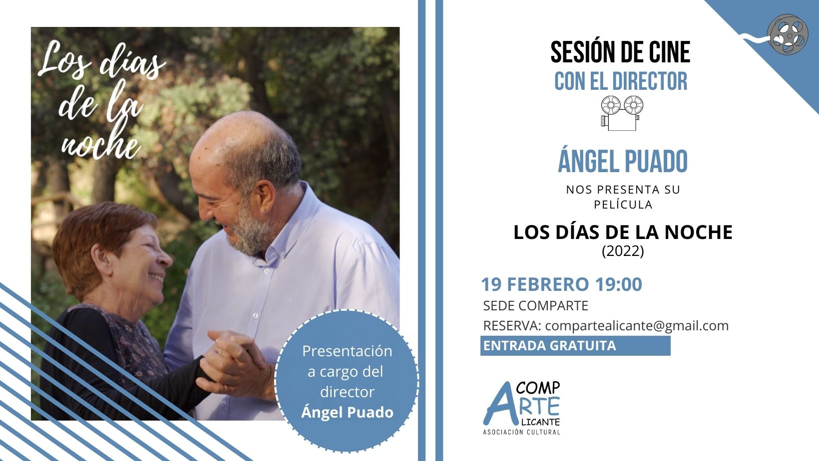 Los días de la noche fue rodada a lo largo del año 2022 será visionada en todos los Ayuntamientos que lleguen a acuerdos con las sociedades de familiares de enfermos de Alzheimer a las que se donará integramente la totalidad de la recaudación de los visionados de la misma, en institutos de toda la geografía que estén interesados en la misma para concienciar a las futuras generaciones de esta enfermedad tan presente en nuestro día a día.