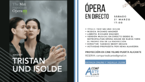 El próximo sábado, 21 de marzo a las 17:00 horas, tenemos el placer de proponeros la ópera Tristan und Isolde (Tristán e Isolda) de Richard Wagner. Podremos disfrutar de esta ópera en directo desde el Metropolitan Opera de Nueva York, que se proyectará en los cines Yelmo Puerta de Alicante.