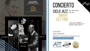 El próximo sábado 25 de marzo os proponemos un concierto de jazz imperdible, en esta ocasión disfrutaremos del Smart Set Trio interpretando a RICHARD RODGERS. Aportación socios 10€ Aportación no socios 15€