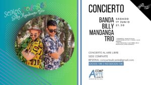 El Concierto de la Banda Billy Mandanga se ha cancelado por falta de inscripción. En realidad se ha pospuesto, y serán los animadores de nuestra fiesta del verano. Ya os informaremos más adelante.